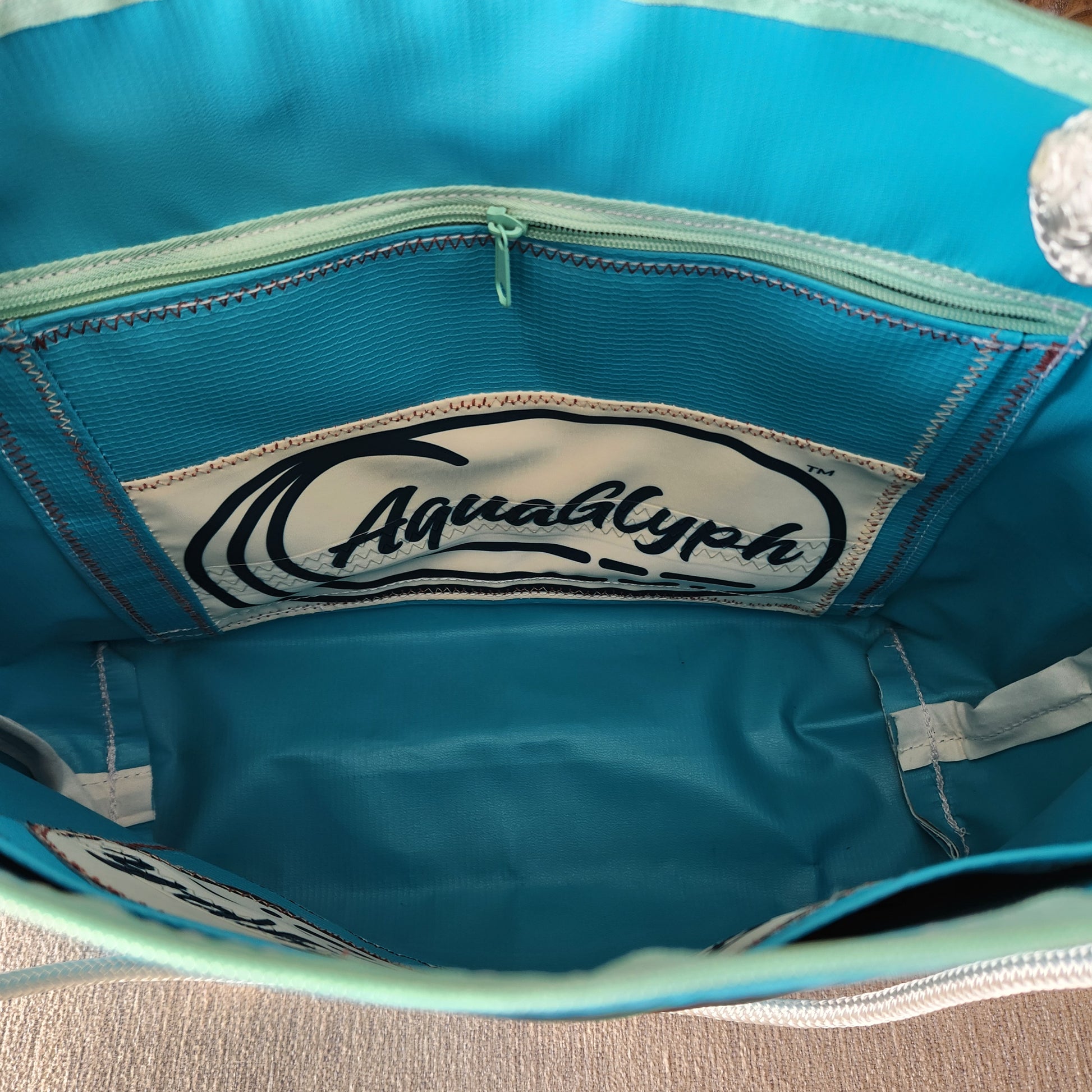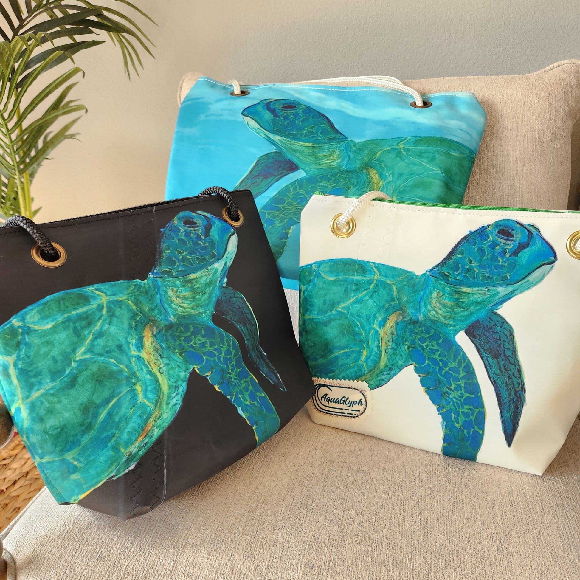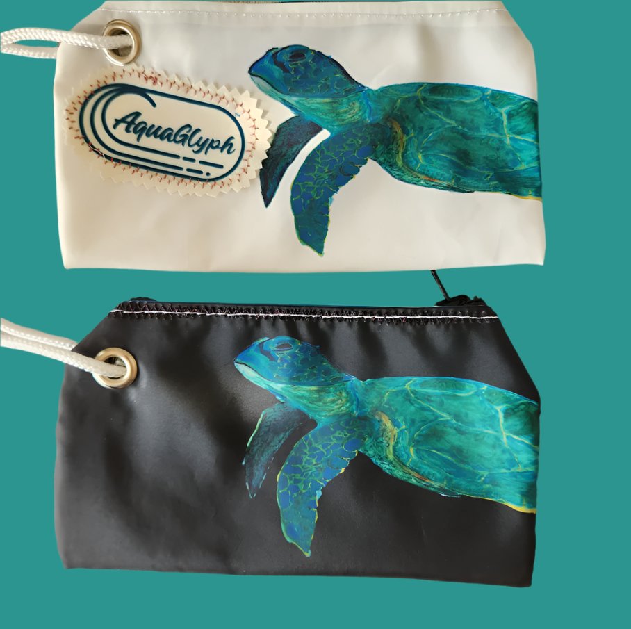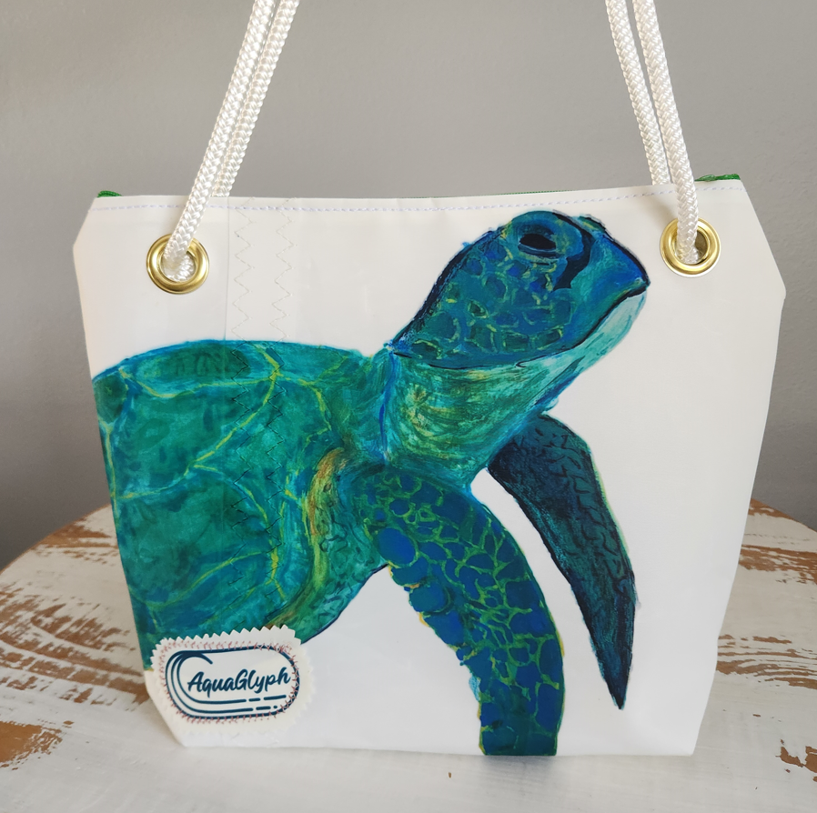 What do you do with old sails from sail boats? Make bags! All AquaGlyph bags made in Florida & each bag is hand sewn. The material is locally-sourced sails. Each bag showcases original artwork and is custom made.