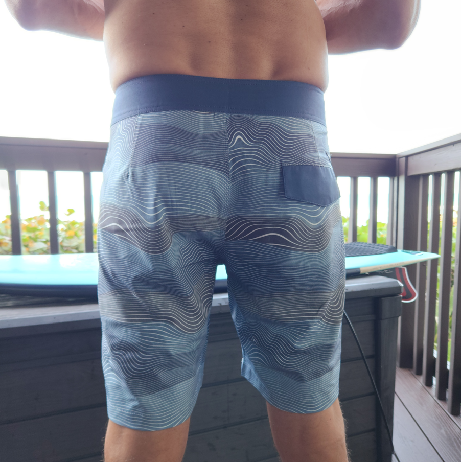 Our AquaGlyph Boardies are so stylish for your Summer in & out of the water! Featuring our Glyph-tech 4-Way stretch fabric, these 18" long boardshorts have an internal back pocket with a velcro flap, and our signature A-frame logo rubber patch on the leg.