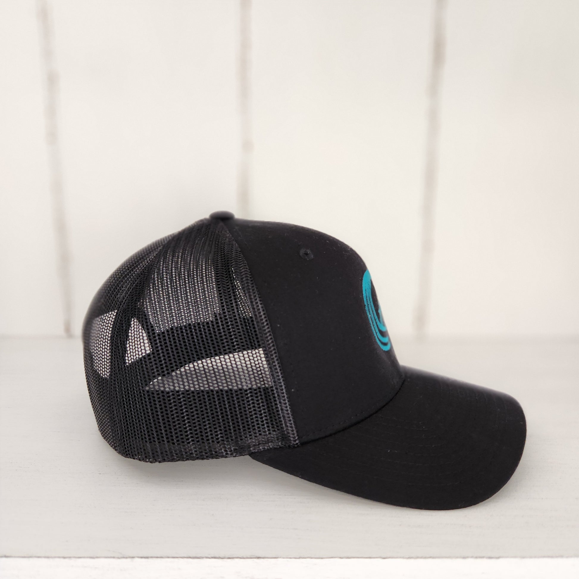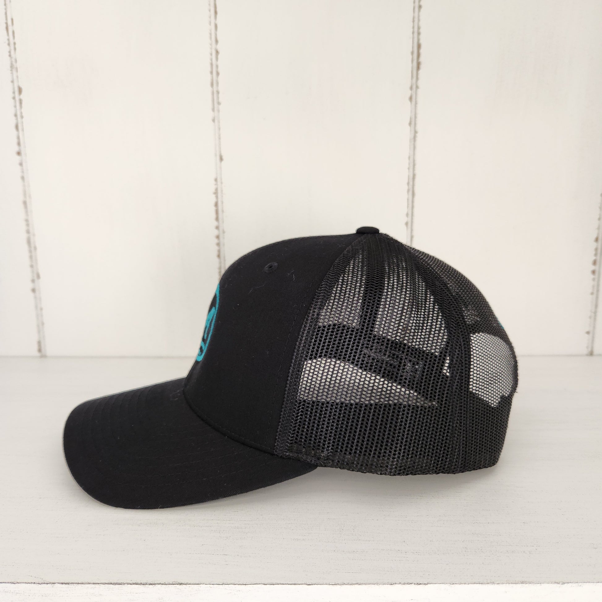 Our A-Frame logo stitched with peacock thread. This design looks so good on this all black snapback. The embroidery is meticulously created and installed in the USA. When it comes to the look and feel of the iconic trucker hat, this hat is it - Richardson 112. Our hats are known for their quality and durability.