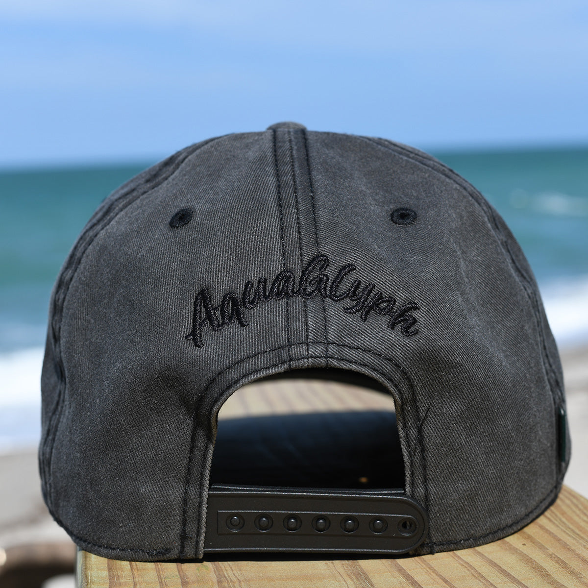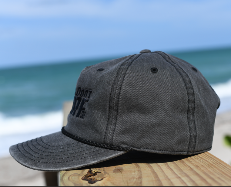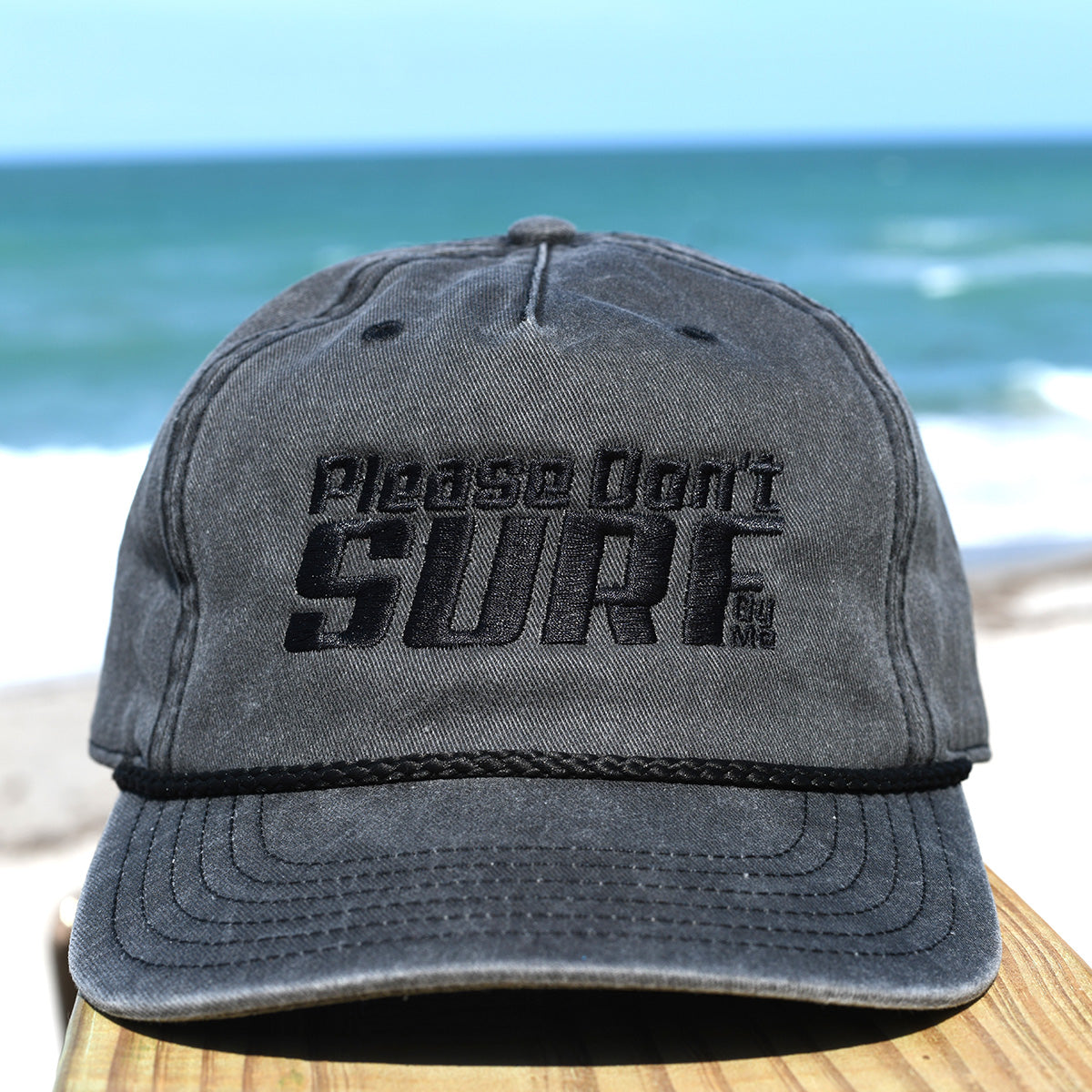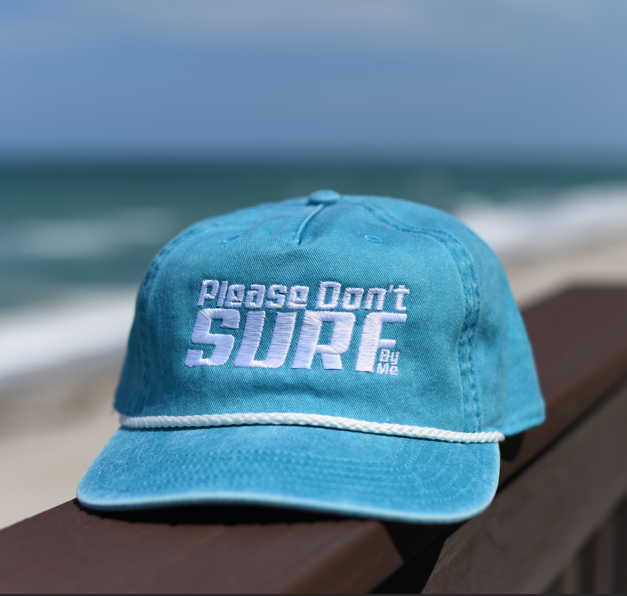 Crowded lineups not your thing? Our Please Don’t Surf By Me hat features boldly colored pigment dye cotton and has a retro-inspired rope detail to this hat to give it that old-school vintage look. This snapback is a 5-panel structured low profile with a slightly curved visor and comes in black or aqua. We also have a t-shirt with this design.