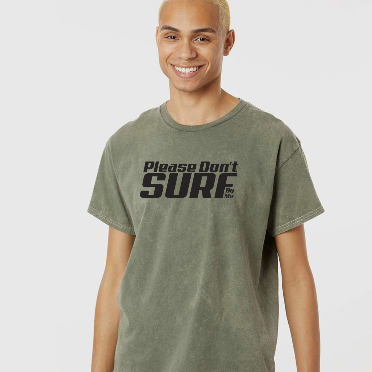 Please Don't Surf By Me Tee, Kale Mineral Wash