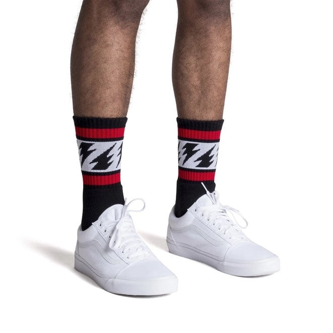 Proudly and sustainably made in the USA from organic cotton & recycled fibers! These signature Mike Vallely lightning bolt socks are so rad. We can't promise you'll skate faster or pull off that new trick, but your feet will be really happy!