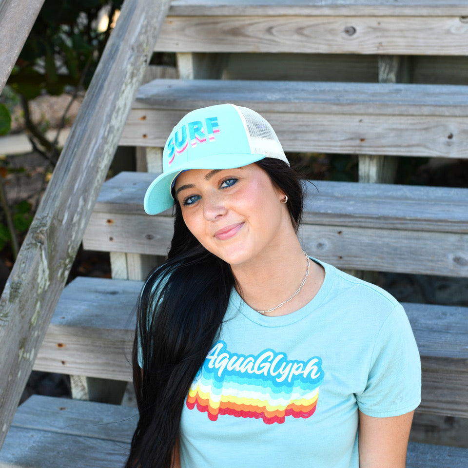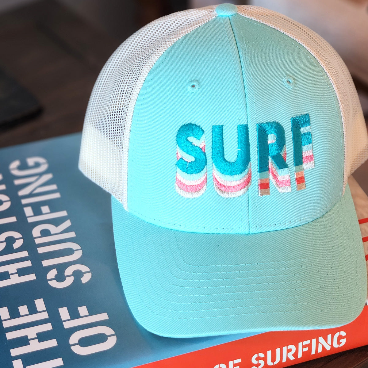 Our classic SURF design is perfectly embroidered onto the perfect low-profile snapback. If you love truckers, but don’t like high crown foam hats that you have to tuck your ears into. Our low-profile design means that the crown where the cap and the top of the head meet is closer than a typical trucker hat, which provides a snugger, sleeker fit. A structured, six-panel trucker hat holds its shape well. This SURF hat is a tri-blend of cotton, nylon, and polyester, making it both comfortable and durable.